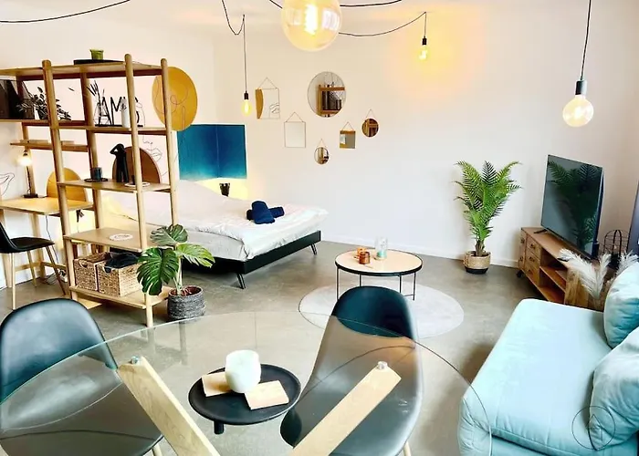 Le parfait Studio de la Cité Ardente - Central毗邻弗洛姆,距离列日机场15公里. 公寓不仅提供配卫星频道平板电视,烟雾报警器 和多频道电视的客房,还设有配烤箱,厨具 和玻璃器具的厨房.